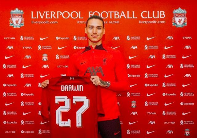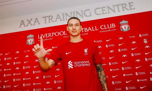 英国当地时间周二,利物浦俱乐部正式官宣了22岁乌拉圭前锋达尔文·努涅斯加盟的消息,他将身披奥里吉留下的27号球衣。在此之前,努涅斯的原俱乐部本菲卡已经率先宣布了这笔交易,总价最高可达1亿欧元,包括7500万基础费用和2500万附加条款。而在获得英国劳工许可证之后,努涅斯正式成为了红军一员。