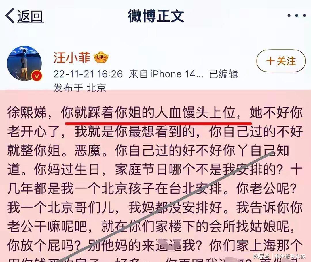 在这段感情中的卑微,也不禁让人想起了之前汪小菲对她的评价。